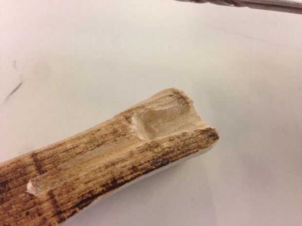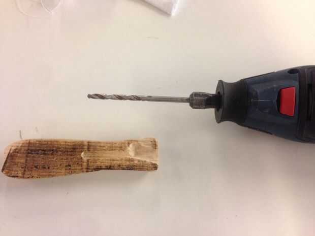 Debido a que nuestro cliente tiene parálisis celebral, la cuchara debe colocarse en un ángulo en el mango (entonces ella tendrá movimientos menos complejos para llevar la cuchara a su boca). Utilizamos una herramienta Dremel para hacer un orificio para la cuchara