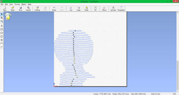 Ora seleziona gli elementi visuales por il taglio en CutStudio e poi clicca su corte por procedere con il taglio.