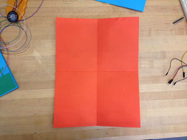 No dude en ser creativo con esta parte. Hacer un monstruo, un jardín de flores o una creación original con las formas comunes de tarjeta. Tratar de hacer un diseño que se verá bien con los elementos conductores que se utilizarán para las llaves. **La parte doblada de la tarjeta en forma de papel será la parte superior de sintetizador, así que por favor planee su diseño en consecuencia. **