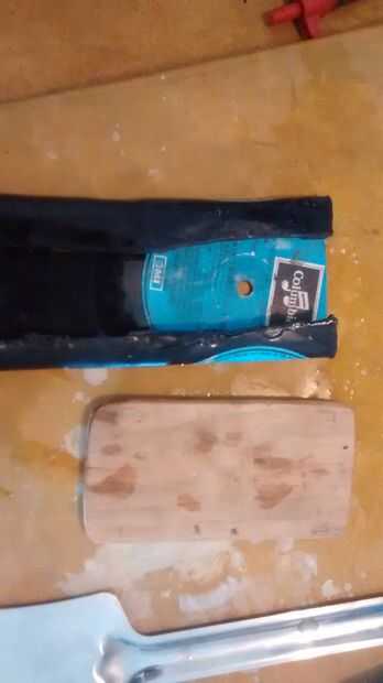 Como que se hace, tome un disco de corte pequeño y corte dos ranuras horizontales. Entre puente será helt por la screwclamp más tarde para montar el soporte para el manillar.