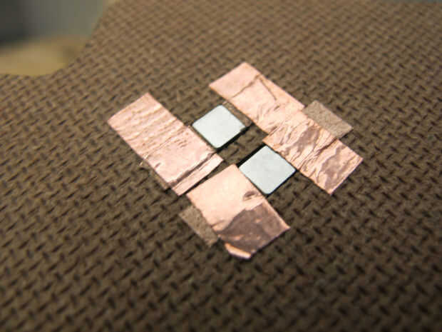 Use porciones de cinta de cobre para mantenerlos encerrados en su lugar y seguro.