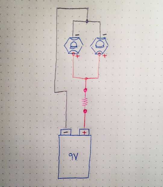 Tenga en cuenta que no estamos conectando la batería de 9V en este momento, más bien, dejando dos conexiones de cobre 'abiertas' a los pies.