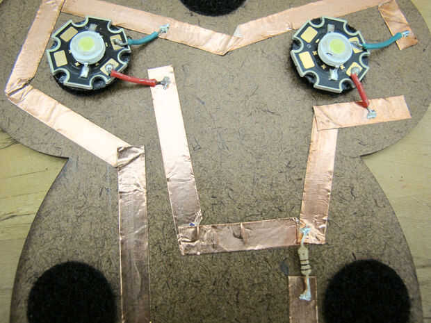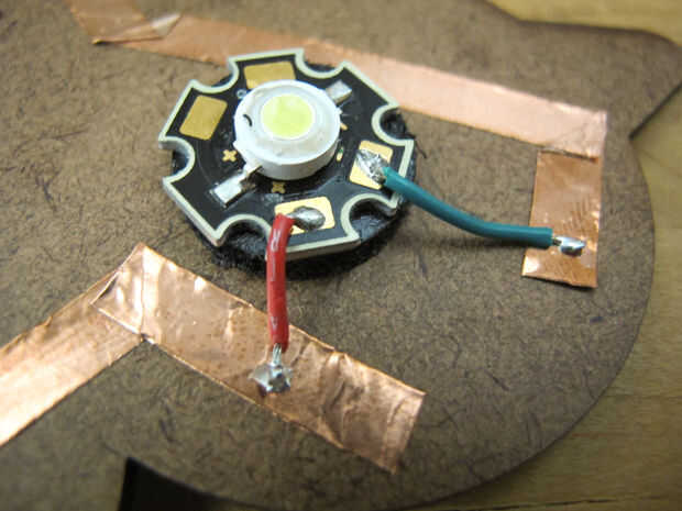 Es sabio probar tu circuito en este momento. Coge el (+) y (-) lleva de la batería, presione el contra las piernas y el LED enciende para arriba. Si no, compruebe las conexiones de soldadura y su circuito. Recuerde LEDs son polares, por lo tanto debe conectarse la manera correcta.