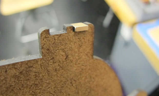 Creado dos ranuras para los imanes de los pies, pero terminó sólo con uno. Los imanes resultados para ser mucho más fuerte que anticipado.