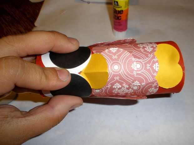 Por último, colocamos pegamento en la parte inferior de la mitad de los ojos, debido a la parte superior finalmente se dobla hacia abajo.