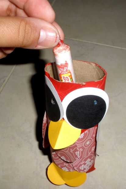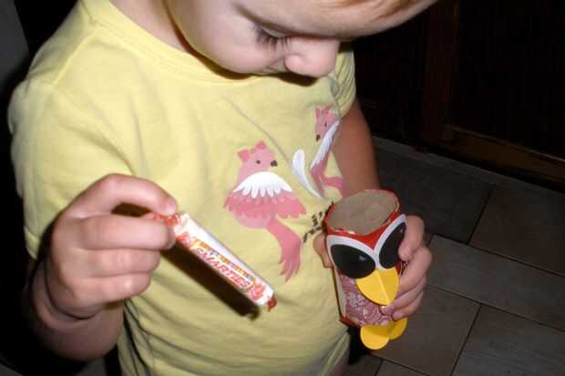 Les llené con caramelos para que a la mañana siguiente, mis hijos fueron sorprendidos con estas pequeñas delicias en los buhos que ayudó a crear. Los pliegues eran sorprendentemente robustos y todavía tengo unos búhos sentados en el umbral de mi ventana.