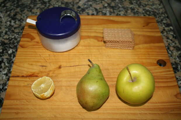 -4 manzanas + 2 pera (pero depende de la taza porque toda tienen diferentes tamaños)