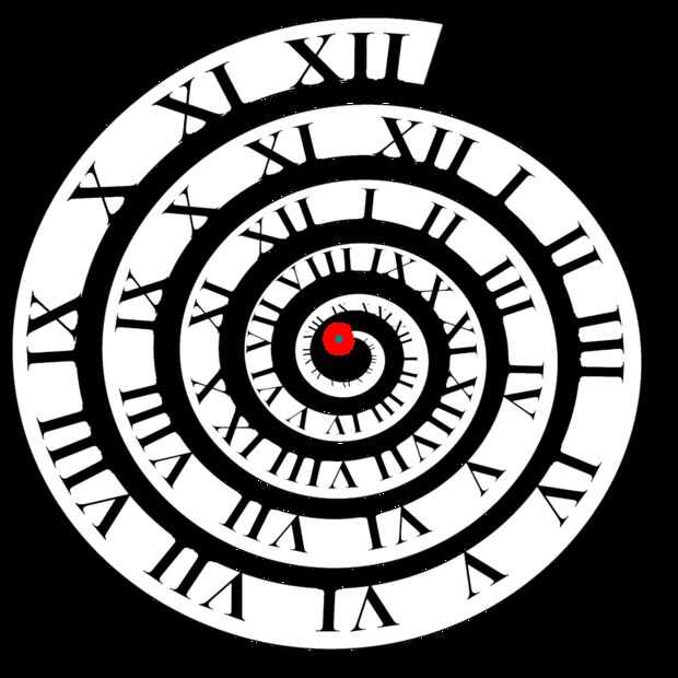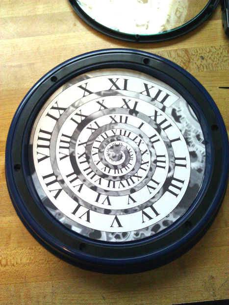 Utilizando Inkscape, había creado un par de espirales y coloca los marcadores de hora en la espiral interna. Un par de destornilladores sonic y una imagen TARDIS completó la obra de arte. Esto era fácilmente la parte más desperdiciadora de tiempo.
