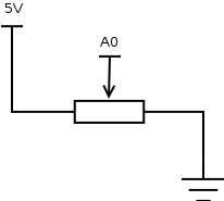 Si eres curioso, un potientiometer funciona como un divisor de tensión. La razón por la resistencia del potenciómetro no es necesaria es porque es la única carga entre 5V y masa. Así, en un extremo de la perilla que está conectado directamente a tierra (0V), en el otro extremo que está conectado directamente a 5V y en el medio obtendrá una suave transición de 0 a 5V. Si ha agregado alguna otra carga en serie a uno de los pasadores exteriores, entonces tendría que considerar cuidadosamente qué resistencia debe ser el potenciómetro.