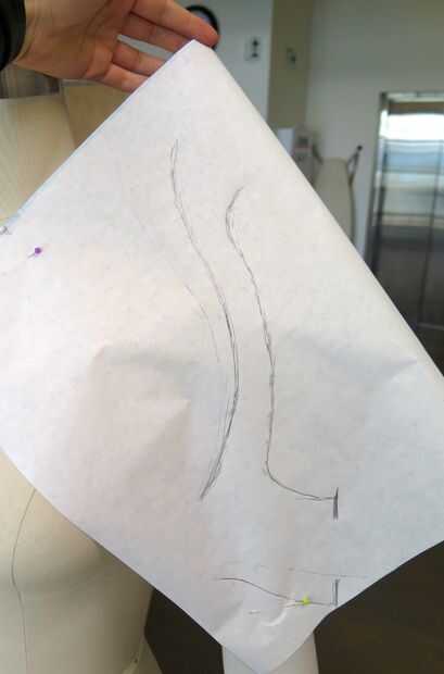 Verdadera su pieza. Esto significa quitar el papel de la forma, puesta sobre una superficie plana, entonces usando la regla y la curva de la cadera para volver a trazar las líneas que gruesa el formulario, limpiar para arriba, haciendo líneas rectas en líneas rectas y curvas más agraciado. Añadir 1/2 subsidio de costura brazo exterior y costuras de las axilas y 1" sobre el margen para la costura del hombro.