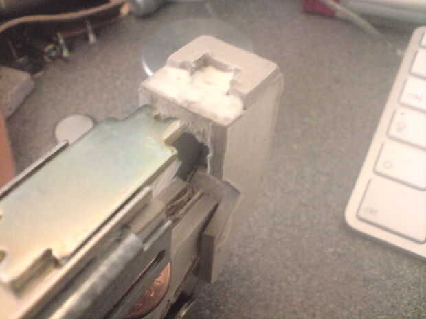 -Luego añade una más magnética pieza de metal, que luego creé una forma correspondiente de la sección dos a trabar juntos.