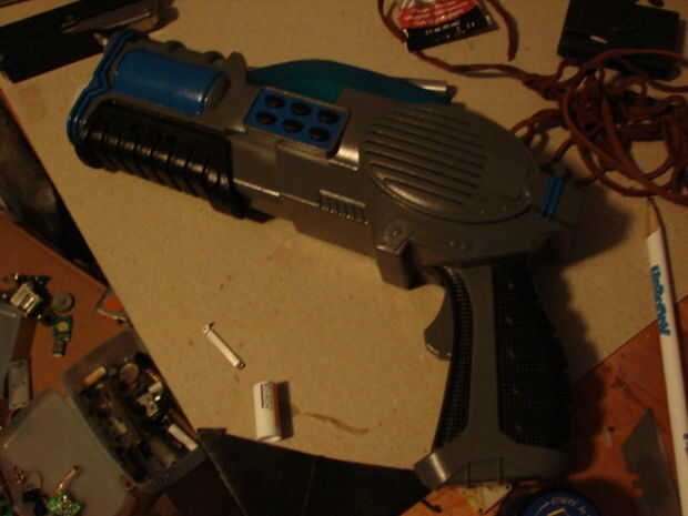 Estoy usando algunos bits de algunos otros basura, grapadora y un reproductor de cd para crear el cargador de munición y algunos otros artilugios y artefactos.