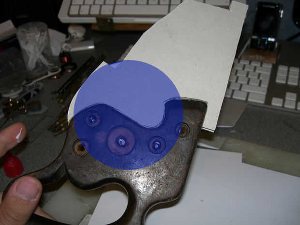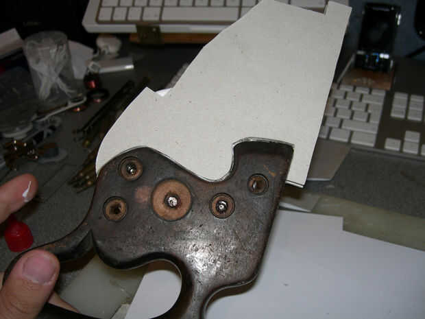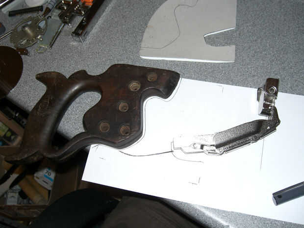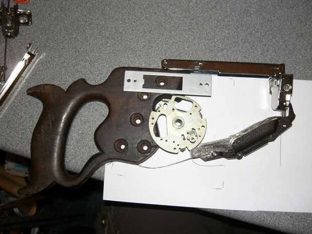 Fotos 1 y 2 - estos muestran básicamente establecen la manija y bisagra, para elaborar algunas secciones de la tarjeta para la base, jugar y ver lo que te gusta, yo fui con un cañón ligeramente más largo.