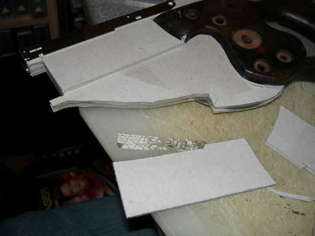 Con esta sección, si sigues las fotografías a lo largo, me verán poco a poco comienzan a construir un cañón, para cada capa de cartón hice una plantilla de papel simple para obtener la forma correcta.