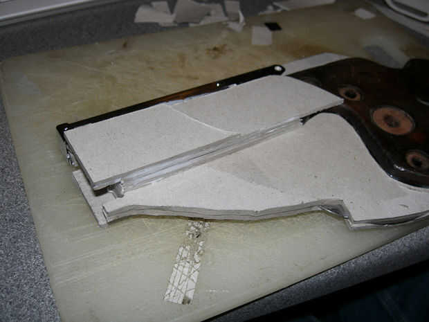 Cada capa se pega con pegamento de pva, esta sección puede pegar todo de una sola vez, y luego en su lugar con cinta.