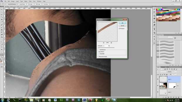 Ignorar los cables que se encuentra en el siguiente paso se me olvidó ocultarlos. La parte inferior de su cuello tiene una ventaja añadida, así que usando la herramienta pluma para hacer una selección en una capa nueva. Luego, haga clic en la herramienta pincel y en la carne circundante mantenga pulsado "ALT" en tu teclado con el fin de los colores de la muestra y hacerlo de esa manera y con los colores pintaron en sube el filtro y hasta ruido pulsa "Añadir ruido" y hacerlo en un 3%. Si hay espacios entre el borde y la máscara a la máscara y color para llenar los vacíos.