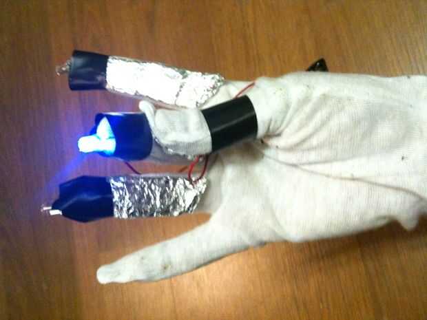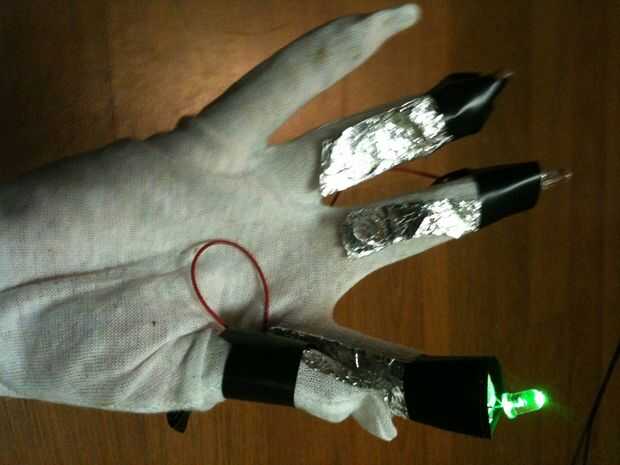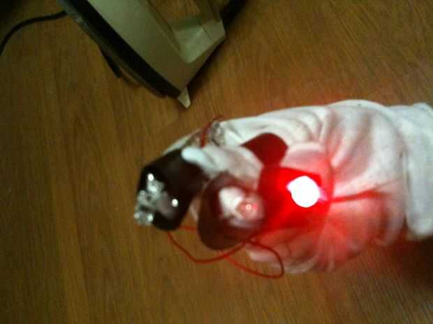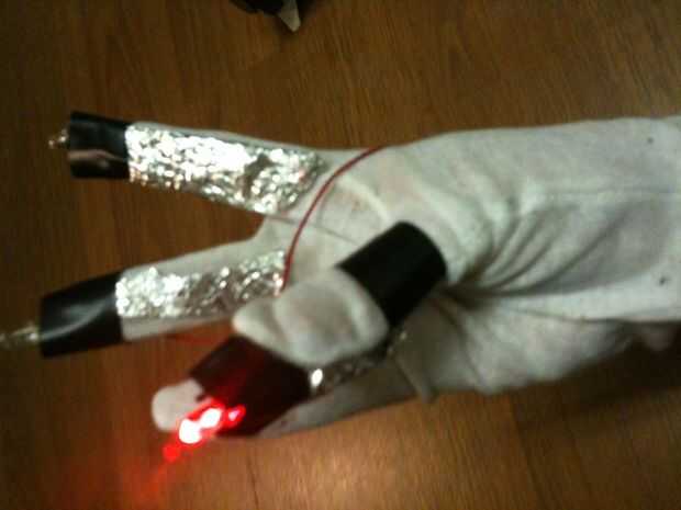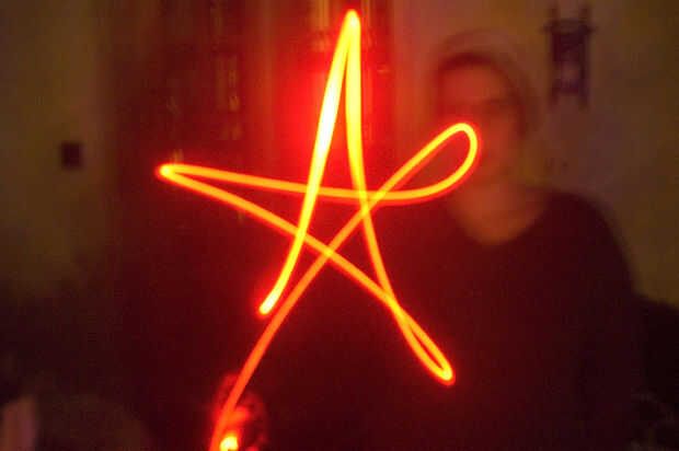 3. usando los guantes, se puede dibujar en el aire en diferentes colores!   Intentar escribir su nombre, esboce un cuadro o simplemente probar diferentes diseños con diferentes colores.   La cámara grabará para siempre y cuando el obturador se mantiene presionado, y cuando termines, podrás ver los rastros de luz.