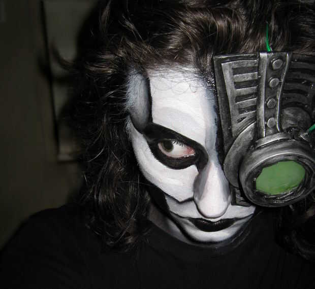 Nada en este paso es realmente necesario, pero puede ayudar a reunir la mirada. Para un toque final, compré algunos pintura grasa y había pintado toda la piel expuesta en mi cara y el cuello. Pintura metálica o polvos sería un buen toque también. Si usted quiere ver más orgánico, puede combinar los bordes con un látex para hacer la transición entre el metal y la piel más suave. O, usted podría conseguir sangre de etapa y goteo todo alrededor de los bordes para que se vea como alguien clavado metal a su cráneo. Lo que adapte a tu estilo mejor.