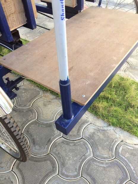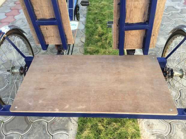 Como todos sabéis que el ciclo puede acomodar a dos personas solamente, pero ya quería hacerlo un seater cuatro, puse de tabla de madera en la parte posterior, para que una o dos personas pueden sentarse en él. La longitud de la tabla de madera es de 990 mm y la anchura es de 533 mm.