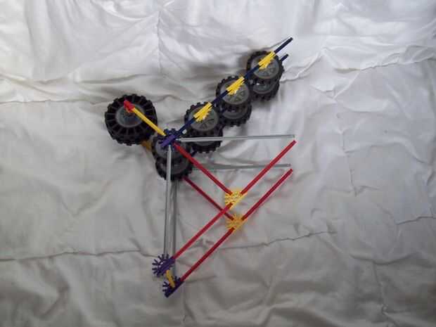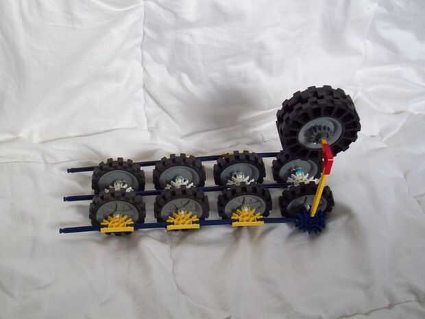 Las ruedas arriba en una barra amarilla hight (a 90° en la superficie de la colina) y utilizan las ruedas grandes con neumáticos grandes. No se pueden mover hacia los lados (yo uso los engranajes gris pequeño) pero tienen que girar sin mucha fricción.