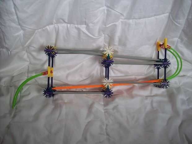 la longitud es gris con las varillas mientras que la altura va en barras azul/verde. Se trata entonces no es una buena combinación si tamaños se basan en barras azules (horizontal/vertical). Sin embargo, esto debería funcionar en barras rojo tambien. Asegúrese de que la bola puede conseguir suficiente velocidad para vencer la resistencia de que los conectores amarillos dan. O construir exclusivamente fuera de los conectores amarillo (o naranja).