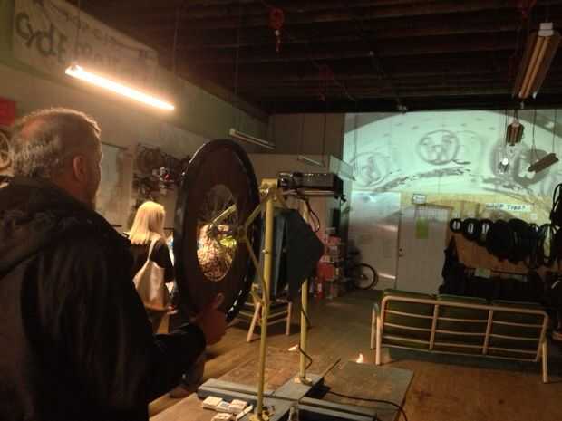 Me pidieron que haga una escultura cinética para un evento de reconocimiento de la bicicleta. El plan era hacer un recorte de madera de una figura humana, que sería montado en una bicicleta con los pies en los pedales. De esta manera cuando se girar