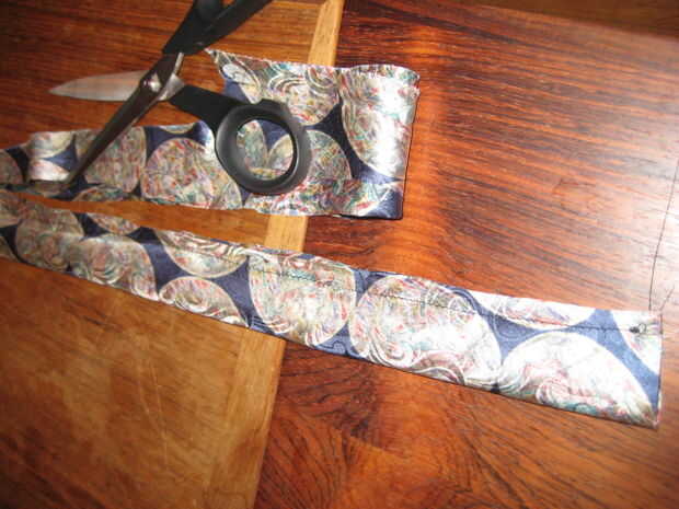 Cortar la tela sobrante, unos ½" hacia el exterior de sus puntadas. Si no usas corbata, usted no necesitará hacer este corte.
