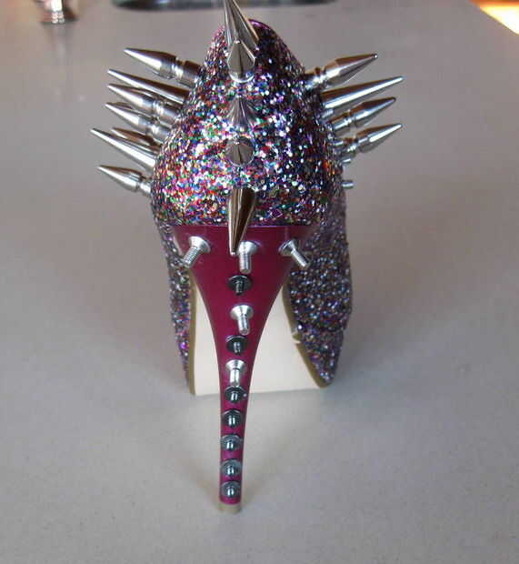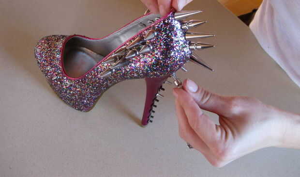 Tomar un tornillo y colocar un poco del súper adhesivo en gel en la cabeza del tornillo. Coloque la cabeza en la parte posterior del talón en el lugar deseado y pulse y mantenga durante 15-30 segundos o hasta que queden bien. Repita el proceso hasta que todos sus tornillos. Deje que los tornillos se seque durante 30 minutos. Después de 30 min, tornillo de sus picos en la parte posterior del zapato.