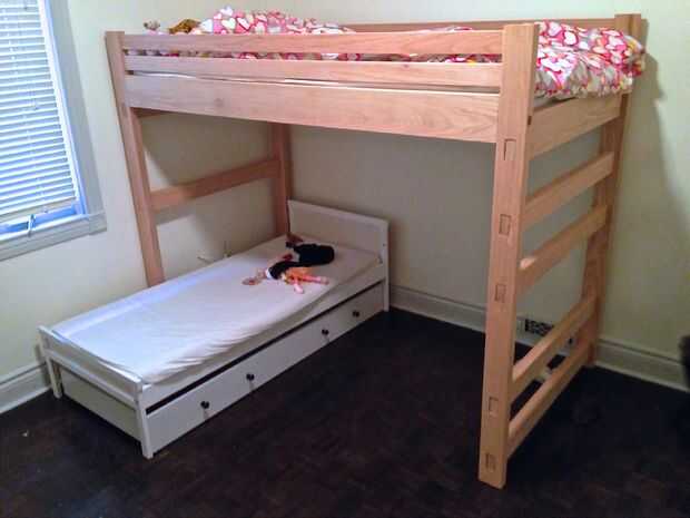 Nuestra familia recientemente creció de 4 personas a 5, y eso significaba que los niños debían jugar camas musicales. El nuevo bebé tiene la cuna, su hermano mayor se subió a la cama de su hermana mayor, y por lo tanto hermana necesitaba una cama nueva! Nos decidimos por una cama, desde el más viejo dos ahora comparten una habitación, pero no estábamos contentos con las opciones para la compra de una cama del desván. Y cuando no estás feliz con lo que las tiendas, solo tienes que hacerlo usted mismo!