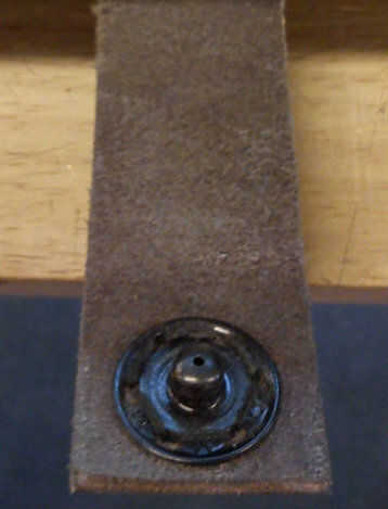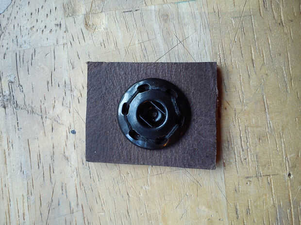 Usar hilo y aguja para coser el cierre de broche de presión a las piezas de cuero.