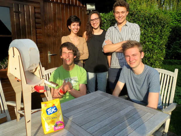 La ayuda de la galleta es un producto hecho por Olivier con Olivier. Nosotros, los tres diseñadores y un terapeuta ocupacional hemos buscado una solución para Olivier. Hemos querido hacer un producto así Olivier sería capaz de comer independientemente. La ayuda de cookie es un contenedor que puede fácilmente ser lleno de. Después de ser llenado, Olivier puede utilizarlo sin ayuda hasta que está vacía. Se diseña así que podría ser lavado sin desmontarlo.