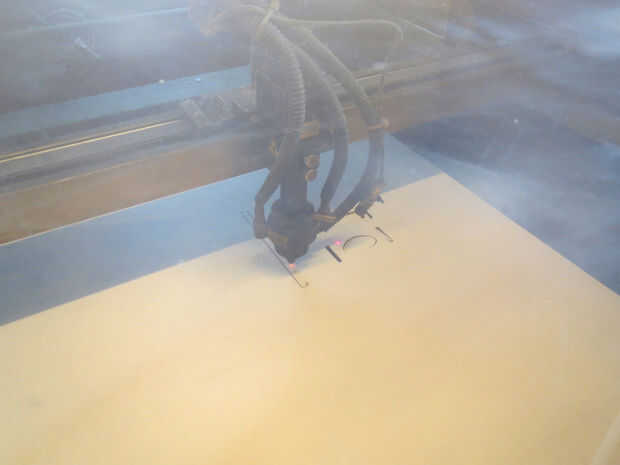 El cortador del laser se utiliza para crear las necesarias piezas de triplex y polipropileno.