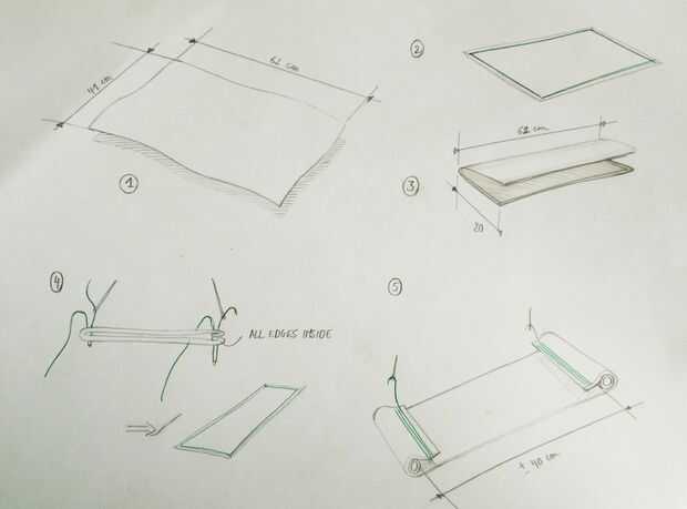 1. hacer dos piezas grandes de textiles que son similares (dimensiones): 62 cm * 41 cm