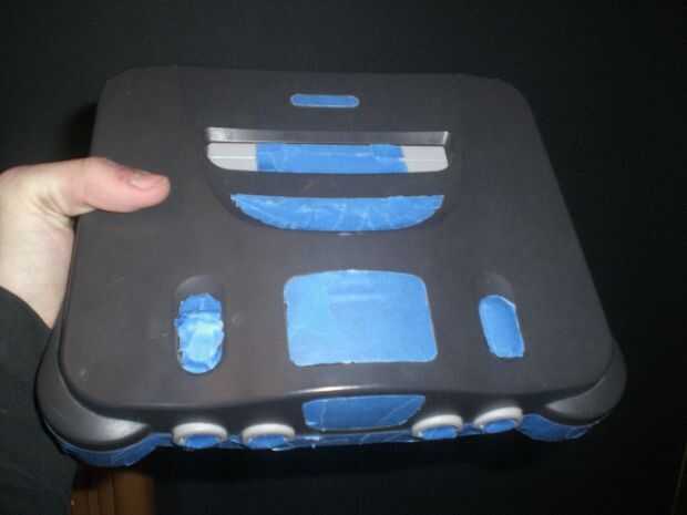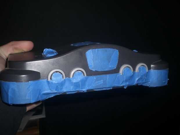 Cinta todas las zonas que desea seguir siendo negro y cualquier área donde la pintura en aerosol no debe ir como -el área de adaptador de alimentación -el puerto de controlador -la idea