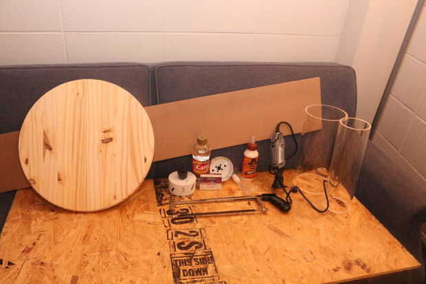 - Tubos de acrílico claro (yo usé un tubo con diámetro externo de 6'' y otra con 4'' de diámetro exterior)