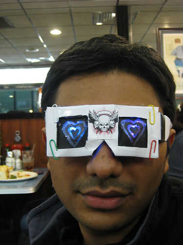Desde que vi esta película Dabangg (Bollywood película) me inspiré por esas gafas que lleva el héroe de la película donde hay un reflejo de un corazón en forma de iluminación led en sus aviadores. Yo quería hacer algo parecido y con la llegada de Halloween pensé parece perfecta para la ocasión.