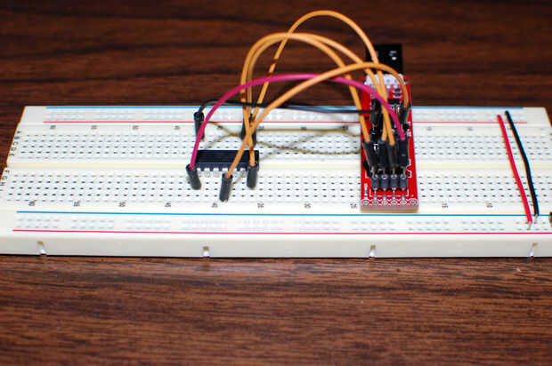 Colocar el chip en un protoboard y realizar las conexiones que se muestra en el siguiente diagrama:
