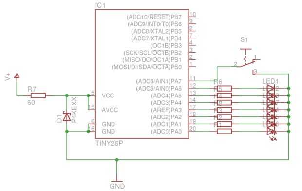 Este proyecto es un dado electrónico usando un chip de Attiny84. El Attiny84 funciona como un Arduino excepto es un chip de 14 pines y tiene menos memoria y ningún programador incorporado. Mostrará como subir un programa con un Arduino usando el IDE