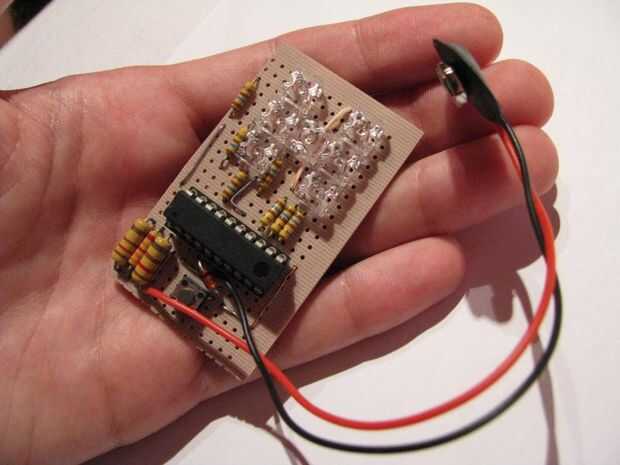 Este proyecto es un dado electrónico usando un chip de Attiny84. El Attiny84 funciona como un Arduino excepto es un chip de 14 pines y tiene menos memoria y ningún programador incorporado. Mostrará como subir un programa con un Arduino usando el IDE