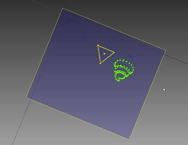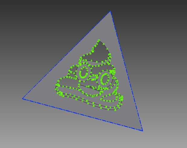 De Inkscape, luego pude exportar el trazado de vector como un archivo DXF. Inventor puede importar esto como un bosquejo; con escalamiento y rotación I había alineada con la cara triangular y utiliza la función de esta opción para grabar en la cara.
