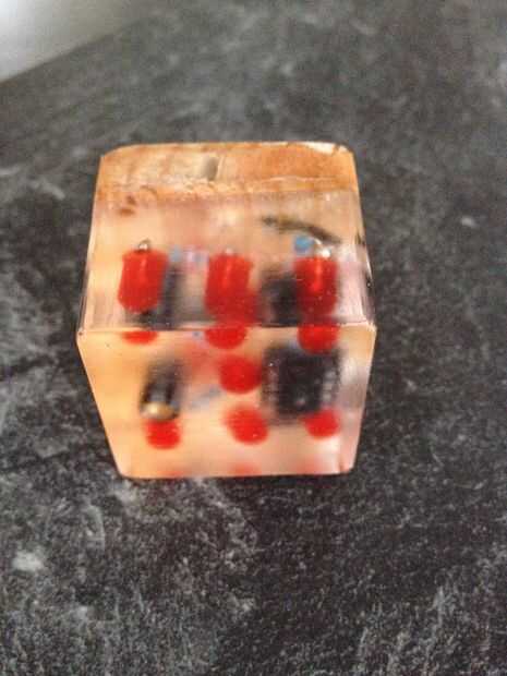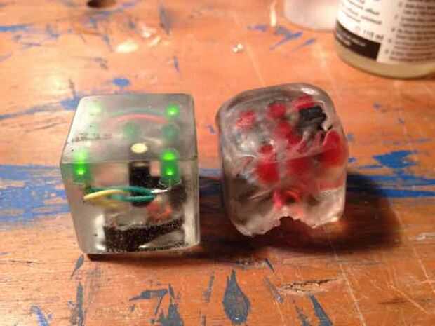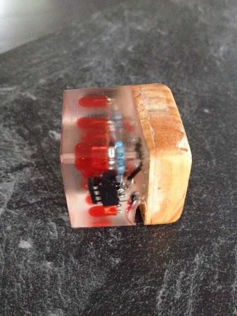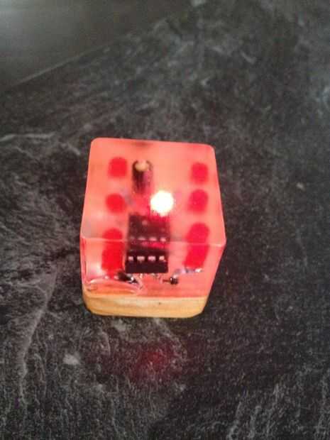 Dados de tutorial para un DIY con Attiny85, sensor de inclinación, Charlieplexing, resina de cristal.