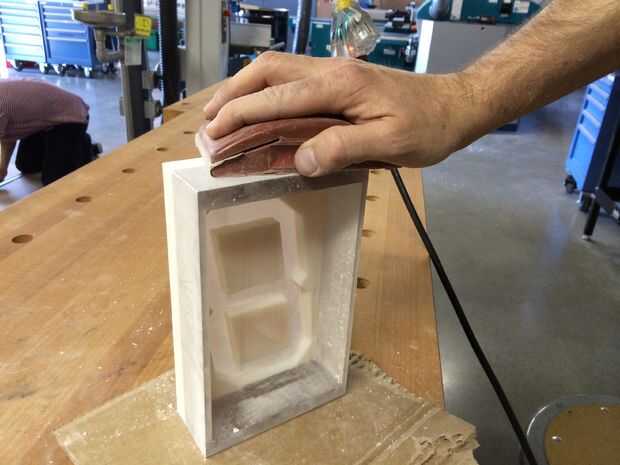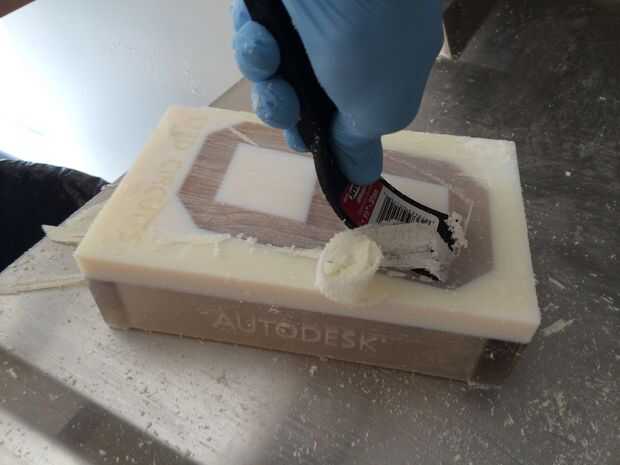 Una vez listo el modelo 3D imprime en un Objet Connex 500 con multimaterials, claro y blanco. 12 horas más tarde estaba listo para limpieza y lijado.
