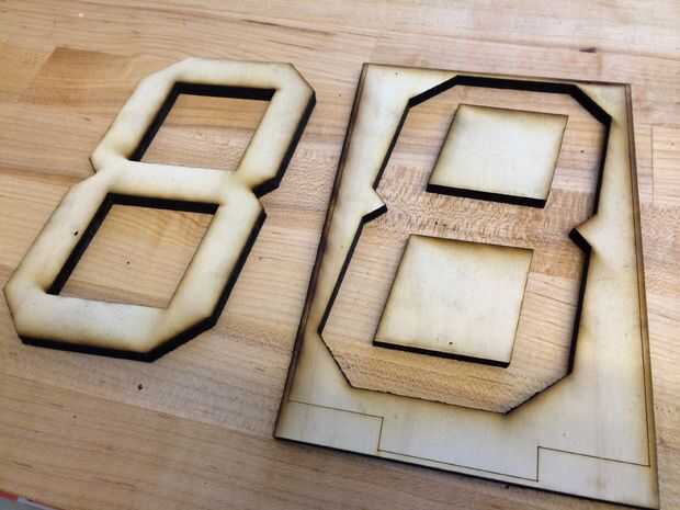 Entonces nos láser cortar el archivo vectorial para ver si cabe el componente 7 segmentos bien. Lo ha hecho.