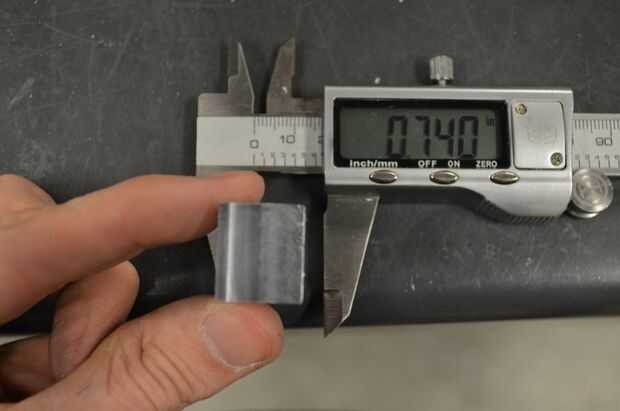 En mi caso estaba buscando un cubo de 0,65 pulgadas. Uso de calibradores digitales medí la distancia entre la cara inferior y la cara superior. Esto nos da la distancia desde la parte superior de los paralelos en la parte inferior del molino de extremo, suponiendo que no hemos movido el eje de Z del molino desde que una descremada pasa en la cara superior.