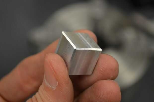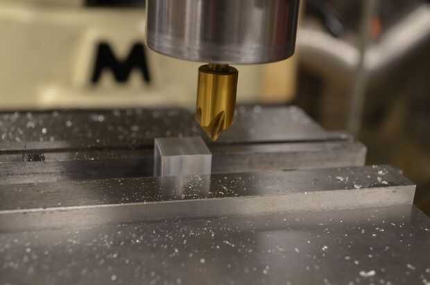 Encienda el molino y mover la pieza en el eje Y hasta las picaduras de la corte en la pieza de trabajo. Mueva la pieza de trabajo en el eje 'X', quitar el filo entre dos de las caras mecanizadas de la matriz. Si desea crear un chaflán más grande, presionar más en la pieza con el eje 'Y' y hacer otro paso. Una vez que esté satisfecho con el tamaño del chaflán, eje de la cerradura su 'Y'.