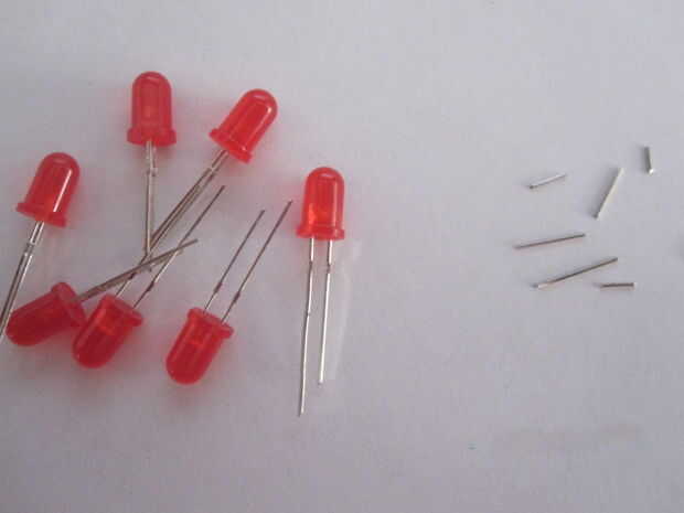 Luego empezar a aranging ellos sobre el tablero, tiene el lado negativo de los leds punto a la izquierda. 1 LED va entre pernos (1, 2 +)