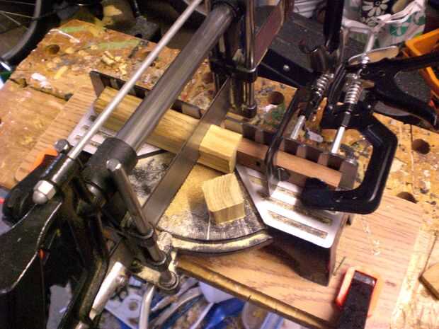 Un stop a mi plantilla de mitre y seis cubos (punta: cortar un trozo del extremo primero para asegurarse de que es Plaza de corte - lay esta abajo y utilice para posicionar con precisión el tope sujeta - así, a cortar cubos perfectos)