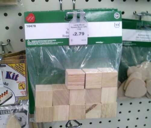 Si no puede encontrar la madera adecuada, o no puede ser molestado con todo lo que corte y lijado, es posible comprar en blanco dados o cubos de madera de artesanía tiendas.