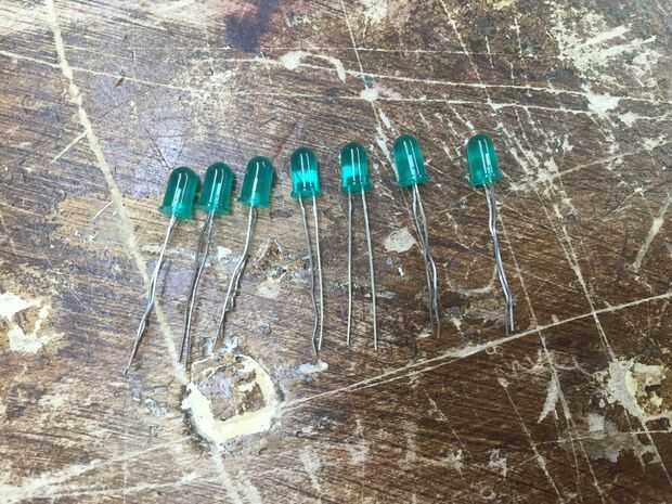 Un divertido y sencillo reloj LED, que te dará la hora a la media hora más cercana utilizando LEDs solo-color. Piezas necesarias son las siguientes:Arduino NanoTablero de 400 puntos de amarreCable de cintaDS1307 RTC IC32,768 kHz cristal(12) 10mm LEDs