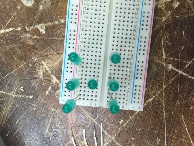 Un divertido y sencillo reloj LED, que te dará la hora a la media hora más cercana utilizando LEDs solo-color. Piezas necesarias son las siguientes:Arduino NanoTablero de 400 puntos de amarreCable de cintaDS1307 RTC IC32,768 kHz cristal(12) 10mm LEDs